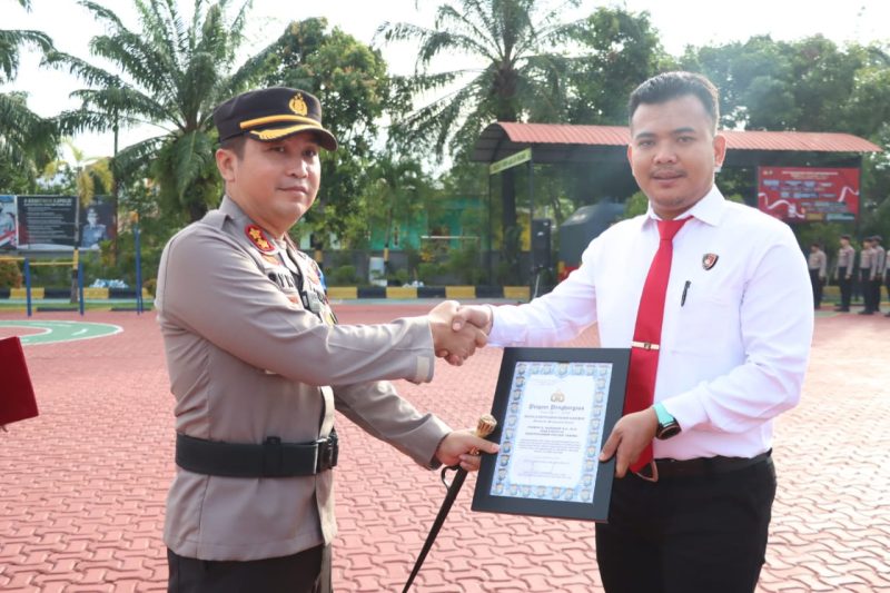 Penghargaan langsung diserahkan AKBP Ryky Widya Muharam saat memimpin upacara di Halaman Mapolres Karimun, Senin (13/2/2023).