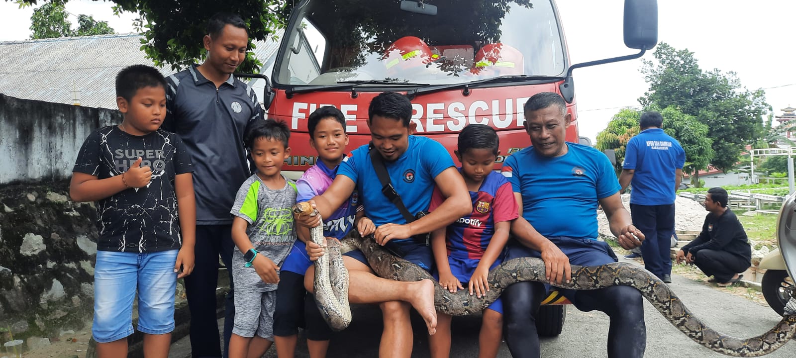 Disebutkannya, proses evakuasi itu berhasil dilakukan atas kerjasama Tim Damkar Karimun dan Prajurit Lanal Tbk. Ular tersebut berhasil ditangkap, kemudian ular sanca berukuran jumbo itu diserahkan ke Damkar Karimun untuk dilepaskan kembali ke habitat aslinya.