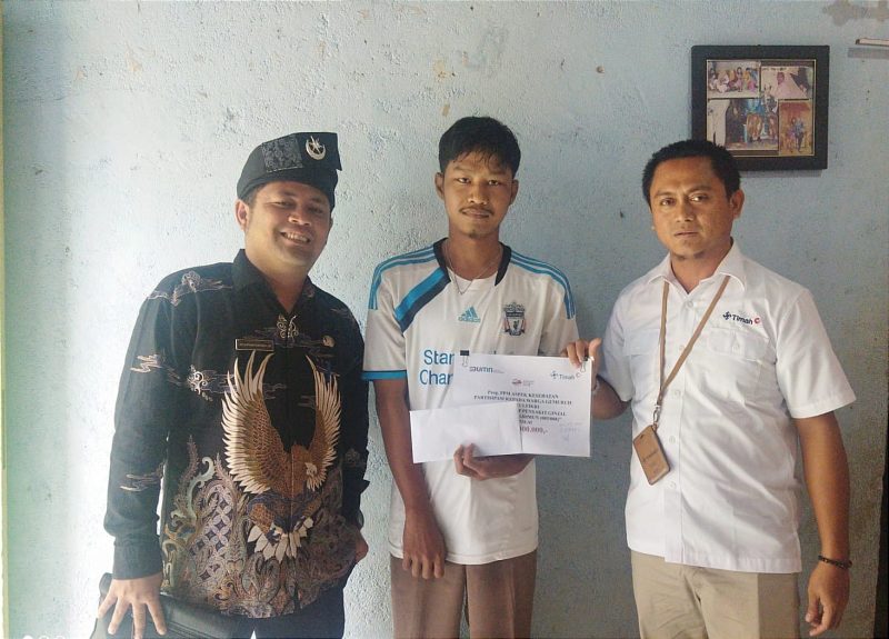 PT Timah Tbk menyerahkan bantuan pengobatan Zulfikri (24) warga Dusun III Bukit Senang, Desa Gemuruh, Kecamatan Kundur Barat yang menderita ginjal bocor, Kamis (7/9/2023).